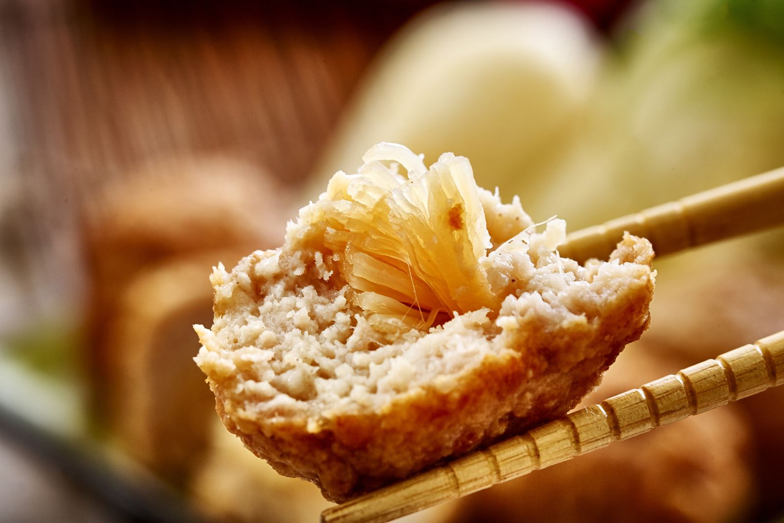 經典鮮肉口味,將豬後腿肉絞成肉餡,拌打出彈性,加入香油提香,口感有彈性又多汁,充滿肉汁的鮮甜,顆顆飽滿渾圓。
